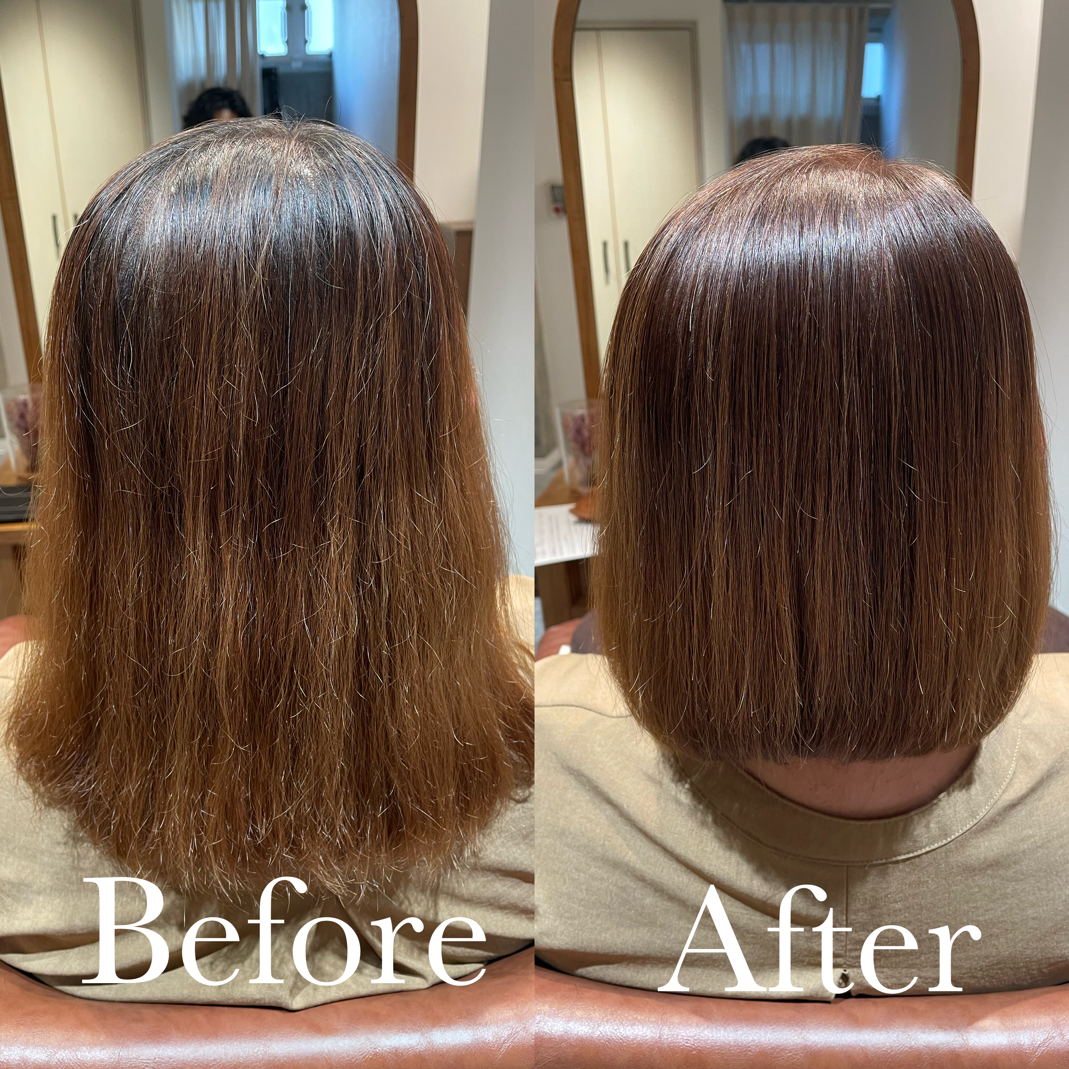 お仕上がりは、みずみずしく指通りの良いツヤ髪になりました。